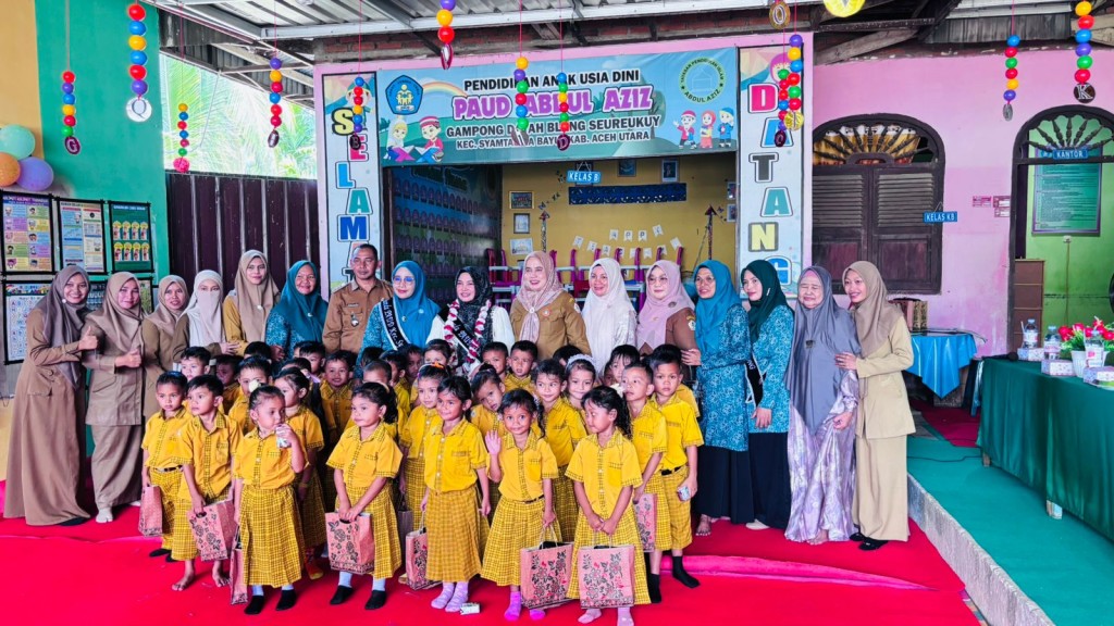 Bunda PAUD Kabupaten Aceh Utara Ny Musliana Ismail A Jalil mengunjungi lembaga Pendidikan Anak Usia Dini (PAUD) Abdul Aziz di Gampong Dayah Blang Seureukuy Kecamatan Syamtalira Bayu, Senin, 28 Juli 2025.
